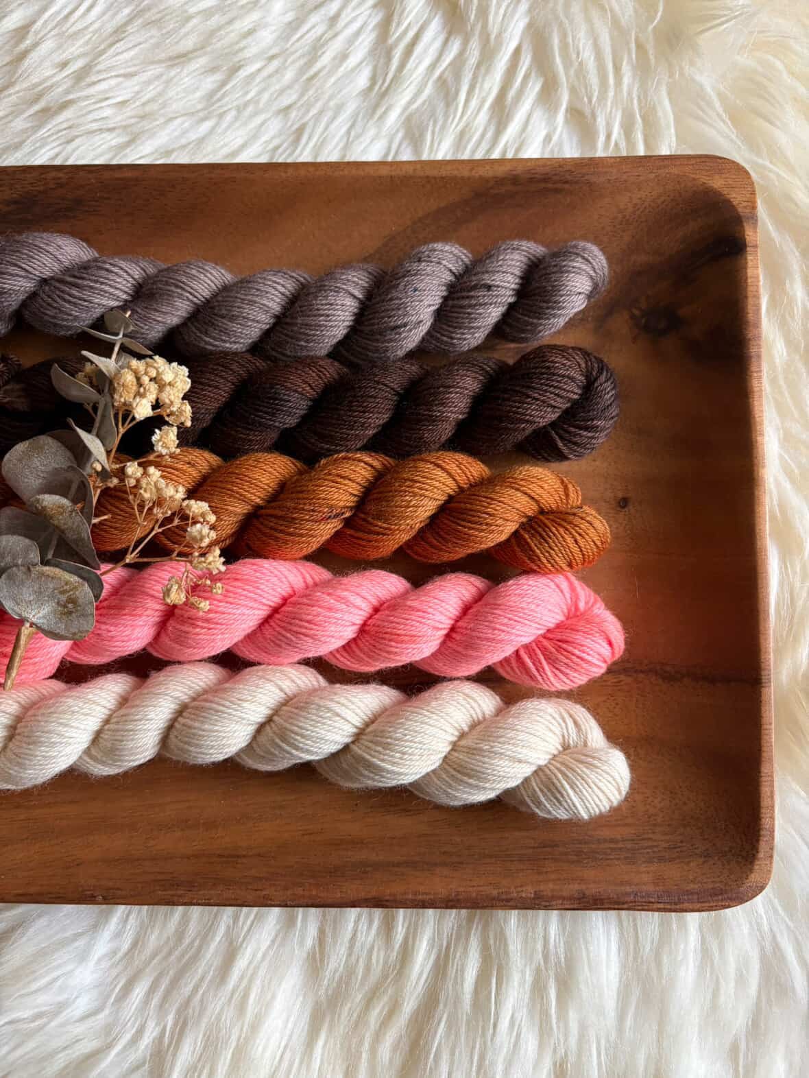 いろんなお色で楽しく編んでいただこうとミニのセットにしました。